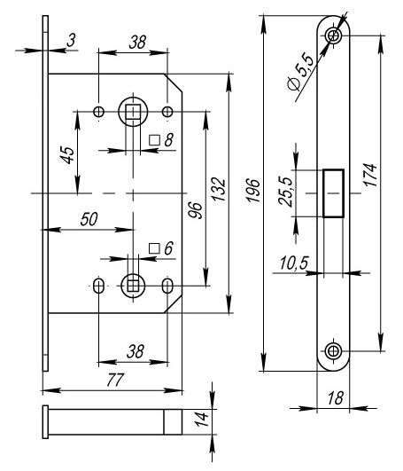 - Размер сечения квадрата фиксатора: 6 мм.
